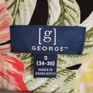 NWT George Mens Small Black Rayon Button Up Hawaiian Shirt Tropical Beach New S