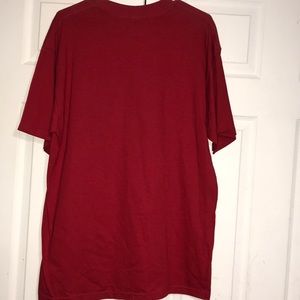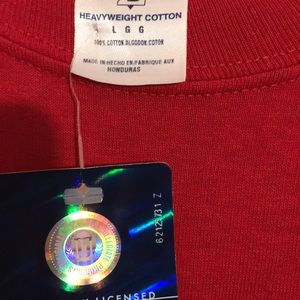 NWT men’s (or unisex) red University of Georgia Bulldogs cotton tee. Crew neck. Distressed-look graphics are painted on (like on a jersey). Brand new but pics 5&6 show both shoulders are faded. Not noticeable once the shirt is on. Sz L. A Licensed Collegiate Product.