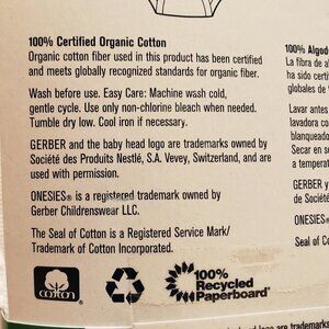 NWT - Gerber Organic (Set of 2) Baby 3pk Long Sleeve Onesies - Size 12M