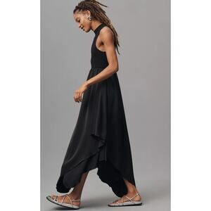 The Gestuz Pama dress combines sophistication and comfort, featuring a mock-neck design, elasticated waist for a flattering fit, and an elegant asymmetrical handkerchief hem with satin trim, perfect for stylish, versatile wear.