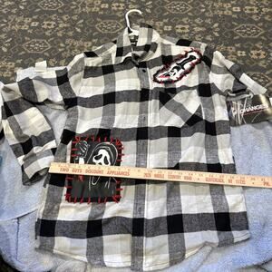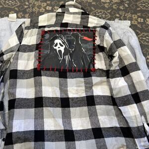 NWT Ghost Face Men's Sz Medium Black/White Plaid Flannel Shirt Halloween Scream