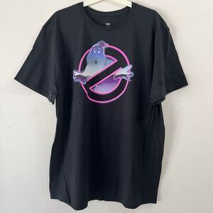 NWT Ghostbusters Black/Pink Neon Logo Tshirt (XL) 80s Movies