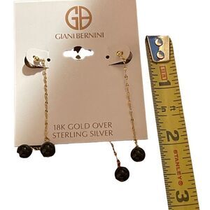 NWT Gianni Bernini 18k over sterling silver dangle chain black bead earrings. Please see pics for more measurement details.