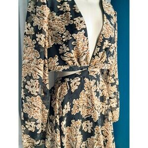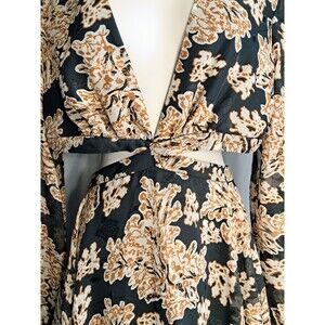 NWT Gianni Bini Black Brown V-Neck Cut Out Maxi Dress Size 12