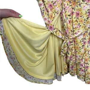 NWT Gianni Bini Floral Print Yellow Gorgeous Wrap Dress Ruffled Sleeves Large