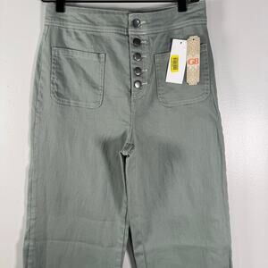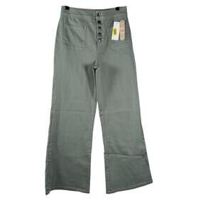 NWT Gianni Bini Green High Rise Button Fly Flared Wide Leg Jeans Womens Size 5