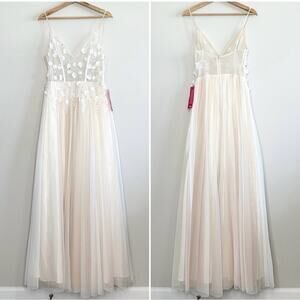NWT Gianni Binni Floral Lace Tulle Maxi Dress Size Small (Juniors 5) Ivory