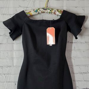 🆕️NWT Gianni Bini Fan Favs Tamara Off-the-Shoulder Sheath Bodycon Black Midi XS