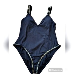 NWT Gibson latimer Europe black 1pc swim large trim in gold