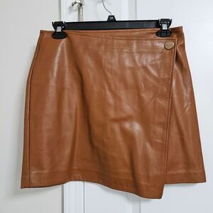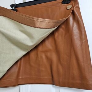 NWT Gigolo Faux Leather Overlap Mini Skirt Women's Large Brown Soft Zipper Boho