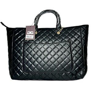 NWT Gilda Paris Quilted Vegan Leather LG 20x13 Tote Bag With Gold Chain Strap &