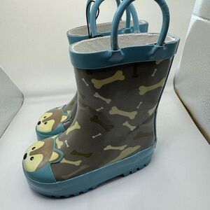 NWT Gina Group Toddler 5/6 Blue Rain Boots with Cartoon Dog & Bones