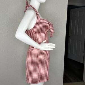 This NWT Gingham Romper in size L is a stylish piece perfect for a Western or Coastal Cowgirl look. The halter neckline and sleeveless design make it comfortable and chic, while the red and white gingham pattern adds a touch of retro flair. The romper features a zip closure, stretch shirred back, and a bow detail, giving it a trendy and playful feel. Made from a comfortable cotton blend fabric, this one-piece is ideal for casual outings, parties, or even travel during the warmer seasons. Perfect for the fashion-forward woman looking to make a statement with her outfit.