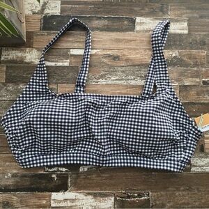 NWT Gingham Textured Bralette Bikini Top Kona Sol Navy Blue