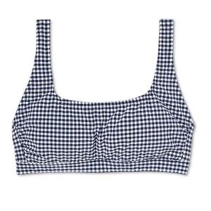 NWT Gingham Textured Bralette Bikini Top Kona Sol Navy Blue - XL (16-18)