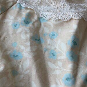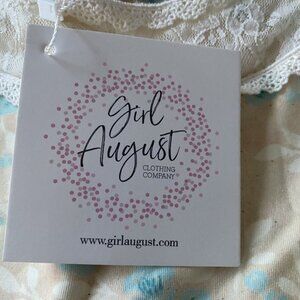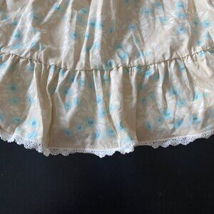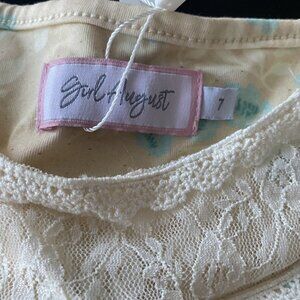 New with tags and in original bag size 7 Charlotte dress from Girl August. Color is oatmeal with light blue floral pattern. Cotton and spandex. Pullover style with tie at waist.