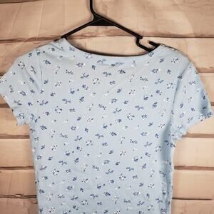 Girls Art Class Light Blue Ribbed Shirt size XL short sleeve with flower pattern. NWT