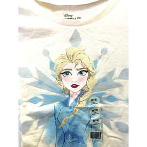 NWT Girl’s Disney Elsa Frozen in White and Blue Cotton Poly Tee Shirt Medium 7 8