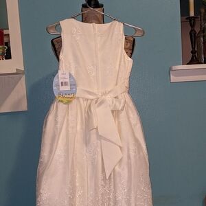 NWT Girls Ivory Special Occasion Dress Floral Applique Flower Sash Party Wedding