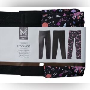 NWT - Girls Kids Leggings 3-Pack - 1 Black - 1 Sparkle - 1 Floral - Size 4/5