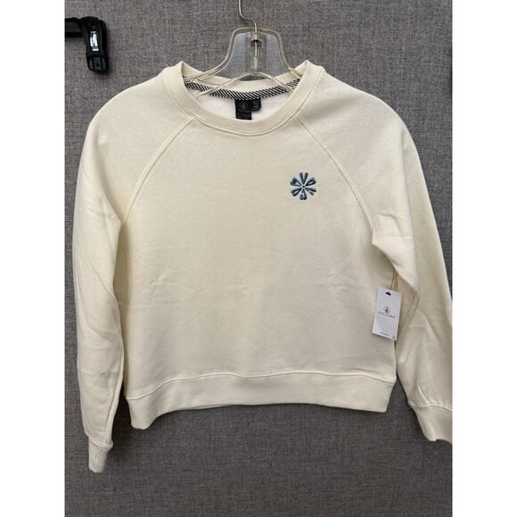 NWT Girls L large 10/12 Volcom crewneck sweatshirt cream Retail $30