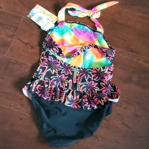 Halter top swim suit with neon palm tree print. Brand new. Never worn/tried on I have a few girls swimsuits. Bundle and save!