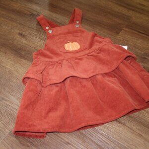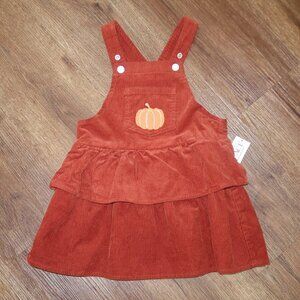 NWT Girls The Children's Place Corduroy Tiered Jumper Dress with Pumpkin Fall 3T