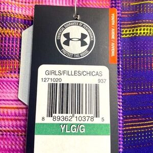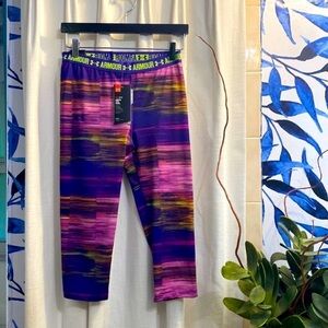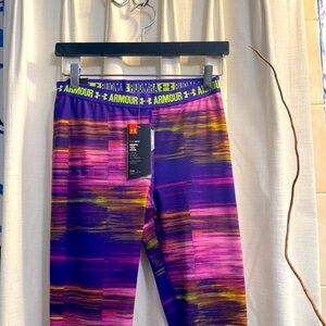 NWT Girl’s Under Armour Printed Capri Fitted Purple and Pink Leggings Size YL