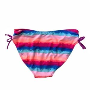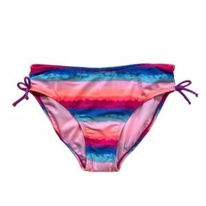 Made by SO brand, this two piece is a quality tankini that fits and wears well. She'll love the sequin unicorn. Very pretty, on trend swimsuit! Cute rainbow criss cross back straps on top match swim bottoms. Sweet bow accents at hip.