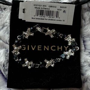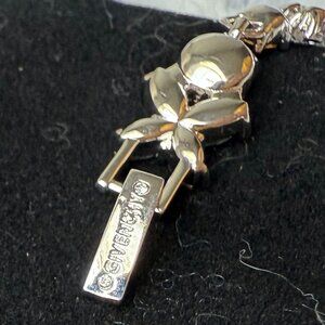 Set in silver-tone mixed metal with blue and clear glass; foldover clasp closure. Comes with dustbag.