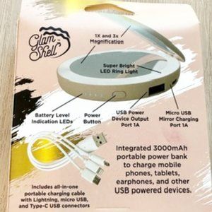 Compact Mirror Power Bank Glam Shell USB Rechargeable
