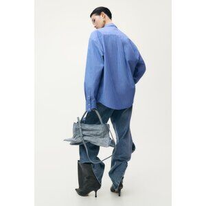 Loose-fit shirt in crisp cotton poplin featuring a collar with wire boning around the edges that adds structure and the option to give it a crumpled, distorted look.