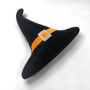 This new with tags witch hat pillow is too cute! Designed in classic black with an orange band and silver buckle, it’s a fun seasonal accent for couches, chairs, or beds. The pillow is soft, lightweight, and easy to style with other holiday décor, such as skull décor, ghost pillows, and other Halloween decorations.