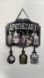 Decorative apothecary wall hanging featuring potion bottles. Perfect for Halloween decor.