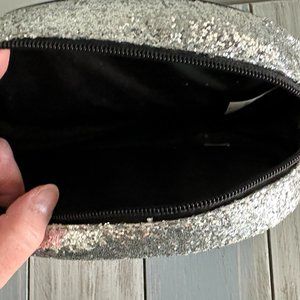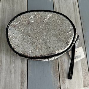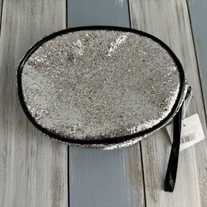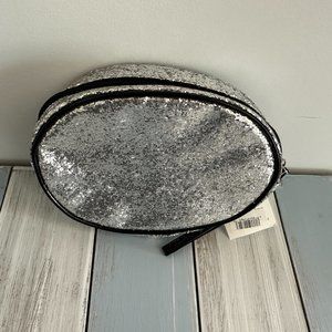 NWT! Glittery Metallic Silver Make Up Bag / Wristlet