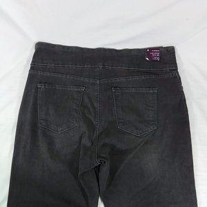 These pull-on jeans are slim-cut, higher-waisted, very stretchy, comfy soft, faded black denim, & new with tags.