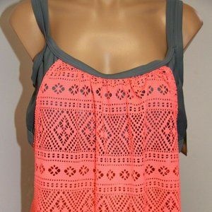 NWT Go Gossip swimsuit bikini Tankini Top Bra Plus size Grey Coral Crochet