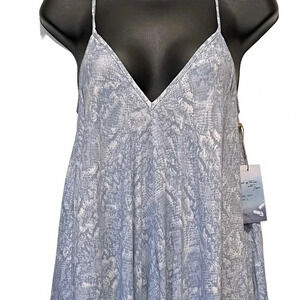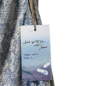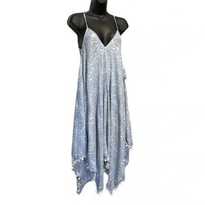 NWT Goa Japna Swim Sleeveless Coverup Handkerchief Hem Pom Pom Blue Womens Large