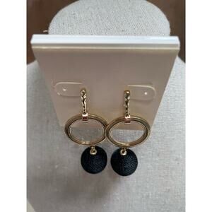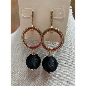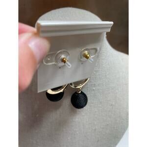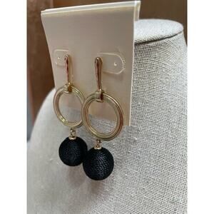 NWT Gold Drop Hoop Earrings w/ Black String Wrapped Dangle Balls