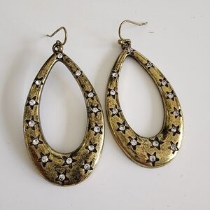 NWT Gold Embossed Star Rhinestone Teardrop Metal Earrings