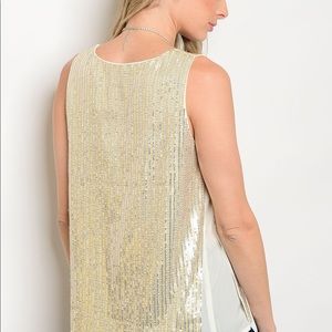 Gorgeous sleeveless Foley tank perfect as a holiday top, date night with jeans, & in the summer with white denim shorts. Subtle sequins lend a chic look that’s sure to turn heads.