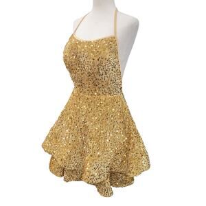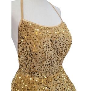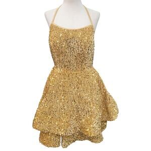 NWT Gold Halter Scoop Neck Sequin Short Dress