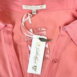 NWT Gold Hawk 100% Silk Blouse Tunic Sz.M Peach Orange Sleeveless Career Office