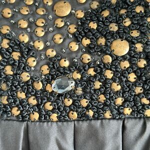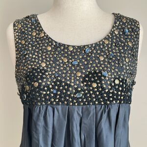 NWT Gold Hawk Women’s 100% Silk Hand Embellished Stones Babydoll Regency Cocktail Dress Blue Size L