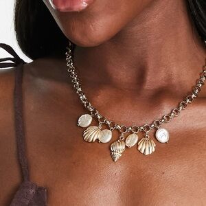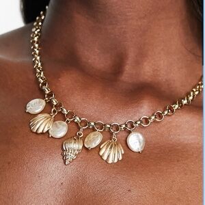 ***NWT**** Gold Pearl and Shell Charm Necklace in Gold