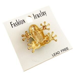 NWT Gold Plated and Green Enamel Glass Frog Brooch