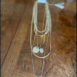Has 12.5” drop & 6 chains which can be separated. Shortest strand is 15” long. You can remove some strands for a different look.