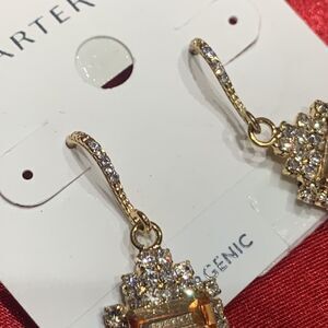 NWT Gold Tone Faux Diamond Light Peach Emerald Cut Sparkle Pierced Earrings