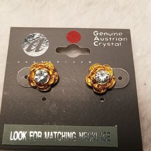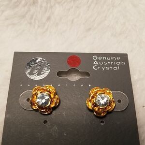 New with tag. Gold colored genuine Australian crystal rose earrings. Made in Korea.