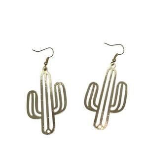 NWT Gold-Tone Laser Cut Thin Metal Cactus Dangle Earrings New with tags Pendant: 2" x 1.25" 3A